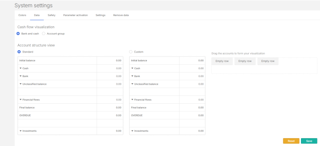 Cash flow visualization : Choose between Bank and Cash or Account Group mode.
