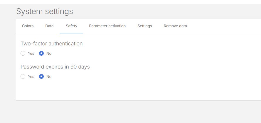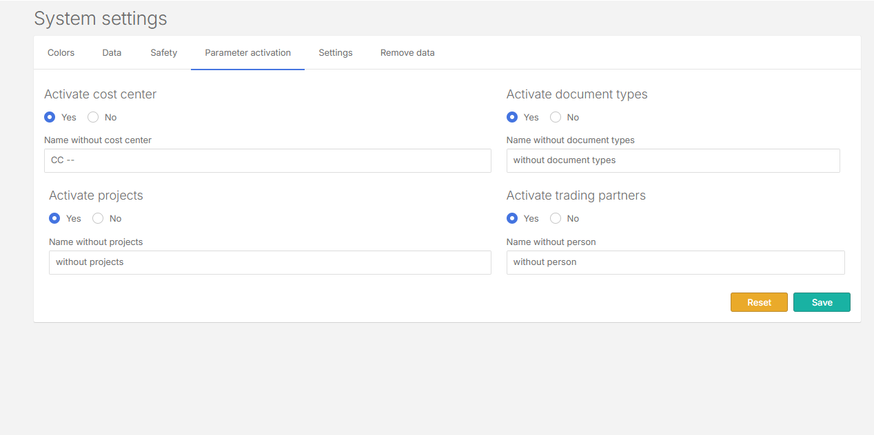 Parameter Activation: Turn on optional features like cost centers, projects, and more.