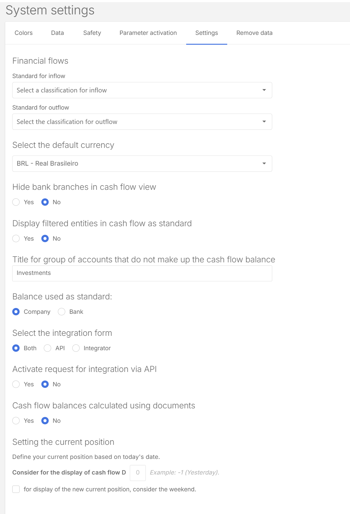 Each tab in the System settings page controls a different part of Cash Management. Here is what you can use them to do:
