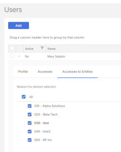 Accesses to Entities: Choose which entities or organizations the user can access.