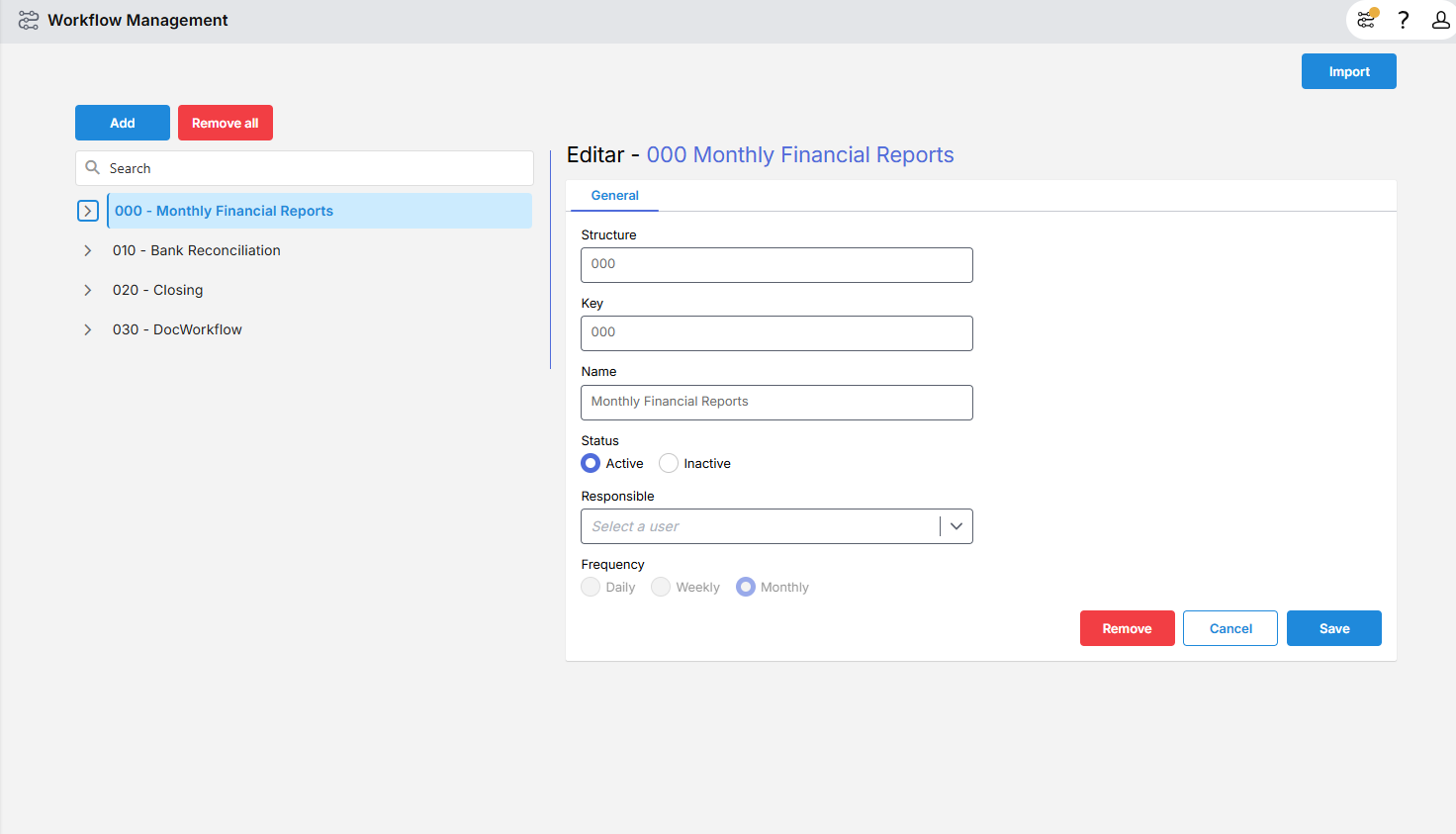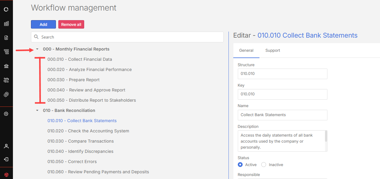 Workflow Management enables all team members (especially financial managers) to define recurring activities (tasks), structure workflows, and assign deadlines. This ensures effective monitoring and execution of activities within their respective departments.